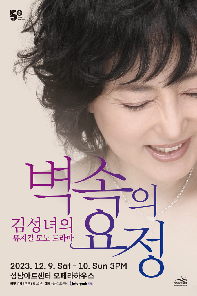 성남문화재단(대표이사 서정림)이 배우 김성녀의 연기 내공을 엿볼 수 있는 뮤지컬 모노드라마 <벽 속의 요정>을 오는 12월 9일(토)과 10일(일) 양일간 성남아트센터 오페라하우스에서 공연한다.