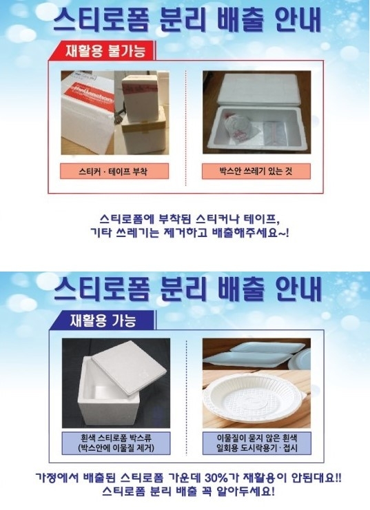 “스티로폼 분리배출시 스티커와 테이프는 꼭 제거해 주세요”