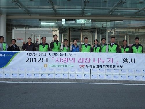 농협중앙회 IT본부에서는 지난 11월 27일(화) 불우 이웃들의 따뜻한 겨울나기를 돕기 위한 사랑의 김장김치 담그기 행사를 가졌다.