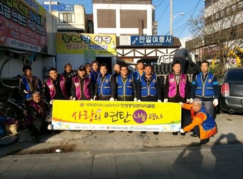 국제로타리 3,600지구 안성중앙로타리클럽(회장 상학 천동현)과 안성시동부무한돌봄네트워크팀(팀장 이혜주)은 지난 11월 26일 ‘사랑의 연탄’ 후원 봉사활동을 펼쳤다.