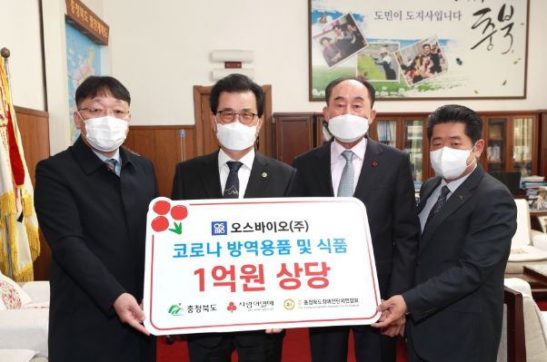 (중부시사신문) 충북 오송 제2 생명과학단지에 소재한 오스바이오㈜(대표 이일호)는 3월 2일 도지사 집무실에서 나눔을 실천하고 있는 청주시내 무료급식소와, 어려움과 아픔을 겪고 있는 장애인을 대상으로 1억원 상당의 물품을 기탁했다.