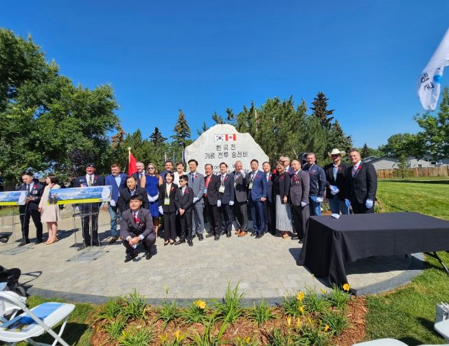 현지시간으로 지난 8일 열린 가평전투승전비 제막식에는 서태원 군수를 비롯한 엘렌 백스웰 가평전투참전용사, 최강천 에어드리 한국전가평전투 승전비위원회 회장, 연아마틴 상원의원, 임웅순 주캐나다한국대사, 크리스 덴뜨레몽 연방 하원의원, 다니엘레 스미스 주수상, 피터 브라운 에어드리 시장, 구동현 캘거리 한인회장 및 교민 등 350여명이 참석했다.