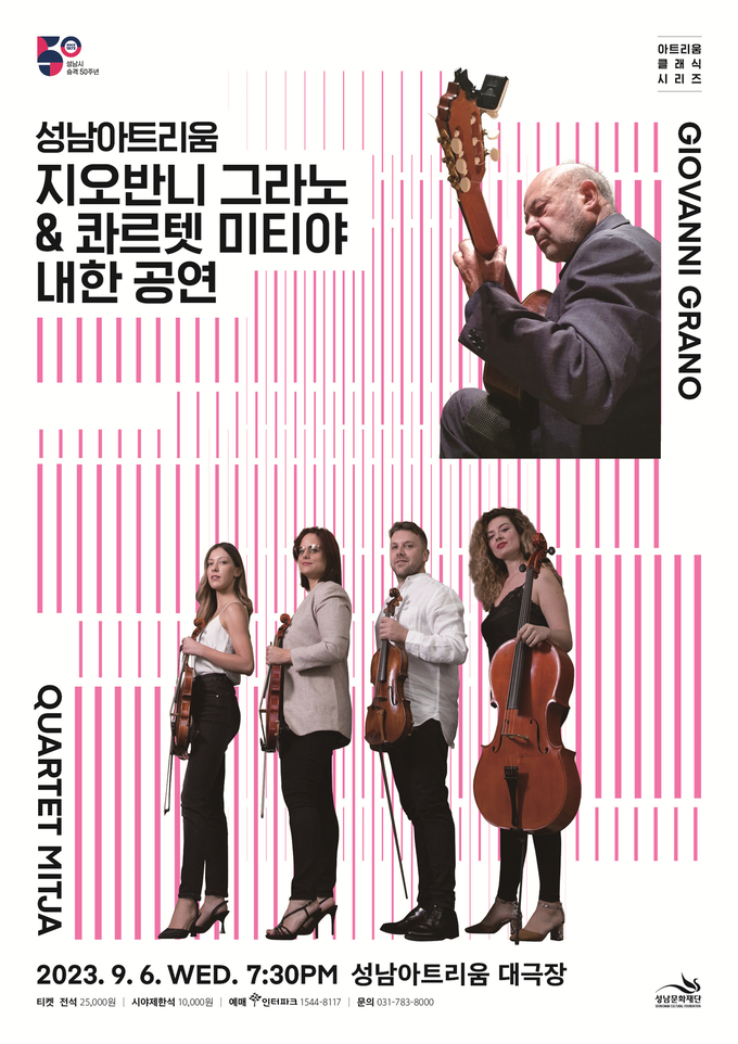 이탈리아 정통 현악 앙상블 콰르텟 미티야와 클래식 기타의 거장 지오반니 그라노가 성남에서 만난다.