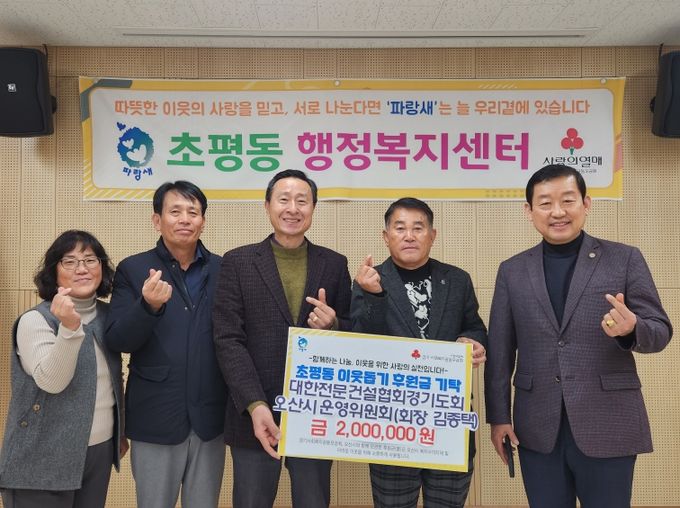 (중부시사신문) 오산시 초평동은 지난 14일 대한전문건설협회 경기도회 오산시운영위원회에서 후원금 200만원을 기탁했다고 밝혔다.