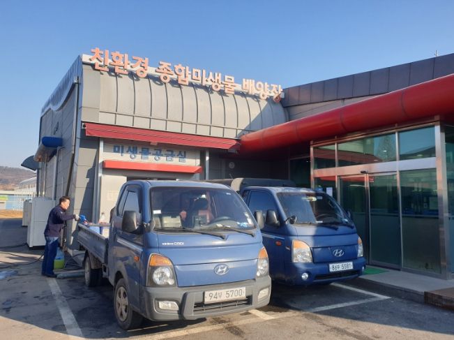 올해는 1,100톤 공급을 목표로, 소농과 원거리 농업인들도 어디서나 미생물을 손쉽게 공급받을 수 있도록 공급 지역을 기존 3개소 본소(규암), 남부(임천), 동부(석성)에서 1개소 확대하여 농업기계임대사업소 서부분소(홍산)에도 미생물 공급시스템을 구축한다.
