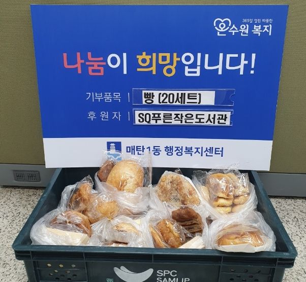 (중부시사신문) 수원시 영통구 매탄1동 ‘SQ푸른 작은도서관’은 매주 금요일마다 저소득 가정을 위한 빵 20세트를 정기적으로 후원하고 있다.