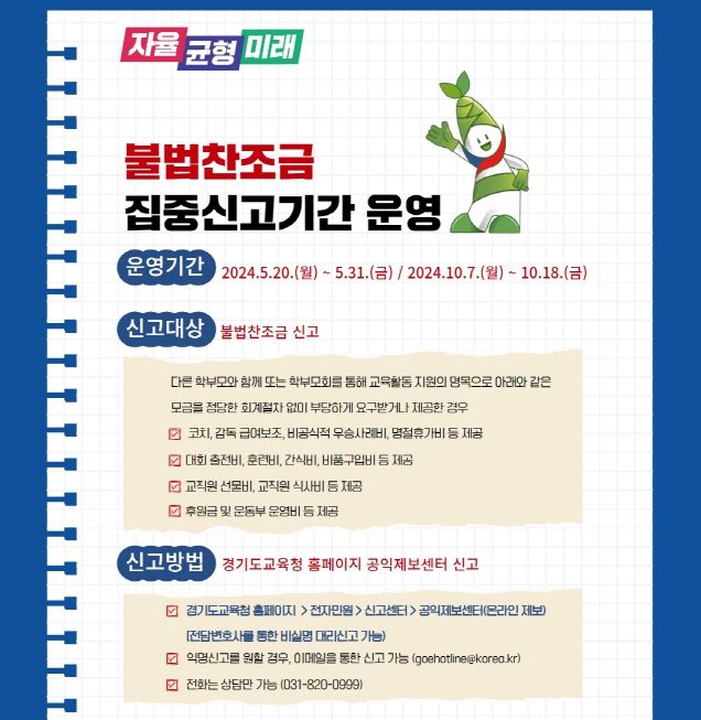 (중부시사신문) 경기도교육청은 공정하고 투명한 경기교육의 가치를 실현하기 위해 부패취약분야별 집중신고기간을 운영한다.