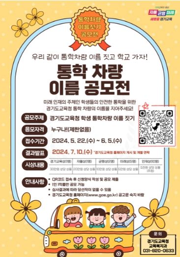 (중부시사신문) 경기도교육청이 5월 22일부터 6월 5일까지 ‘통학차량 이름짓기’ 공모전을 개최한다.