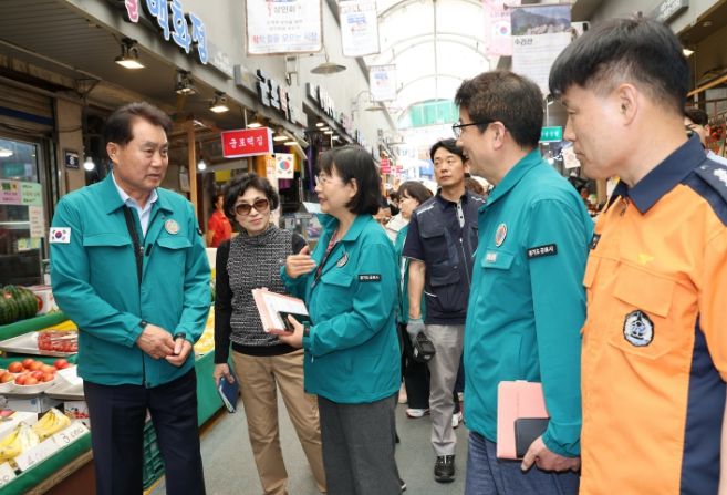 (중부시사신문) 군포시가 ‘대한민국 안전大전환’ 집중안전점검 기간(4.22.~6.21.) 추진에 힘쓰고 있는 가운데 하은호 시장이 28일 군포역전시장을 방문해 직접 현장 합동점검을 지휘했다.