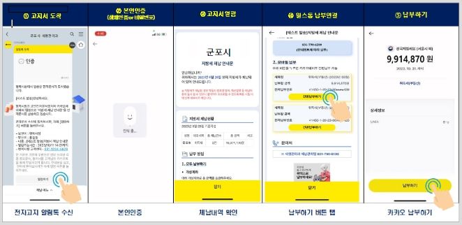 (중부시사신문) 군포시는 국민 대부분 카카오톡 서비스를 이용함에 따라 6월부터 모바일 전자고지 서비스를 시행해 시민들이 지방세 체납액을 보다 편리하게 확인하고 납부할 수 있도록 할 예정이다.