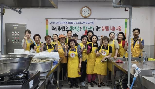2024 연천군 자원봉사 우수프로그램 공모사업으로 채택된 ‘우리 함께해요! 취약계층과 독거노인을 위한 삼계탕 나누기 사업’은 여름날 삼복더위에 제대로 도움받지 못하는 취약계층을 대상으로 고갈된 체력을 보충하기 위해 고칼로리 영양식을 지원하는 활동이다. 삼계탕 나누기 사업은 7월~8월 삼복 기간 동안 총 2회에 걸쳐 나눔 활동을 펼칠 예정이다.