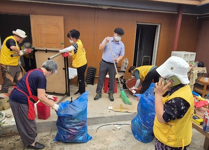 이날 봉사활동은 적십자봉사회원과 청산면 행정복지센터 직원 등 10여 명이 참여했으며, 집 내․외부 청소를 시작으로 현관 및 창문 방충망 설치, 장기간 방치된 쓰레기와 재활용품 분리배출 등 청소 및 방역 소독을 실시해 쾌적한 주거공간을 어르신께 제공했다. 아울러 청소 후에는 청산면 이웃돕기 기부물품인 온수매트, 이불 2채, 살충제 등을 지원했다.
