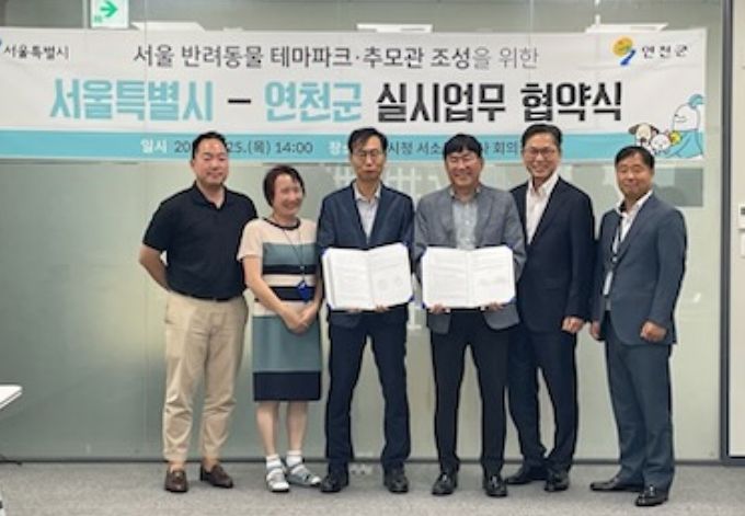 (중부시사신문) 경기도 연천군과 서울특별시가 지난 25일 14시 서울시청 간담회에서 서울 반려동물 테마파크 및 추모관 조성사업을 위한 실시협약을 체결했다.