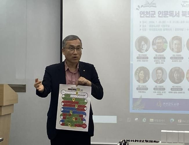(중부시사신문) 연천군 도서관 주관으로 26일2024년 연천군 인문독서 북토크 두번째 특강 ‘독서 대통령, 김을호 교수’의 '상생하는 지구촌 공동체, ESG'를 진행했다. 2023년부터 연천군 독서홍보대사로 활동중인 김을호 교수는 폭넓은 지식과 강의 경력을 가지고 있으며, 지역사회와 함께하는 지속 가능성과 환경 실천을 근간으로 경영에 대해 강의했다.