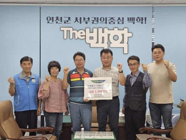 (중부시사신문) 연천군 백학면 주민자치회는 5일 독거노인을 위한 이웃돕기 성금을 백학면에 기탁했다. 이 성금은 지난달 10일 백학면에서 ‘백학어울림사랑나눔바자회’ 행사를 진행하여 ‘아나바다(아껴쓰고 나눠쓰고 바꿔쓰고 다시쓰다)’ 물품 판매와 음식 판매를 통해 얻은 130만원 상당의 수익금이다.