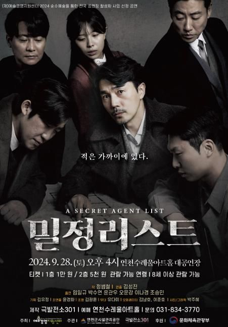 (중부시사신문) 연천수레울아트홀은 오는 9월 28일 오후 4시 창작 연극 ‘밀정 리스트’를 선보인다. 이번 연극은 2019년 다큐멘터리 KBS 탐사보도부에 방영된 내용을 바탕으로 여전히 많은 밀정들이 독립운동가로 둔갑해 현충원에 안치되어 있다는 역사적 사실을 반영하여 극화한 작품이다.