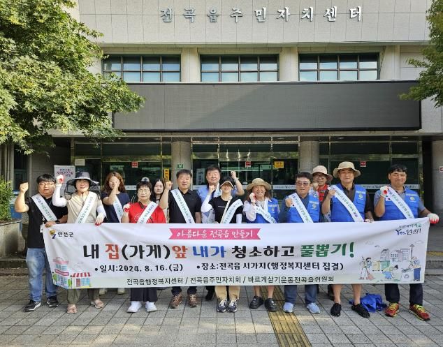 (중부시사신문) 연천군 전곡읍은 16일 관내 시가지의 지역상권을 중심으로 행정복지센터 직원, 전곡읍주민자치회, 바르게살기전곡읍위원회가 함께하는 내 집 내 가게 앞 풀뽑기 캠페인을 실시했다.
