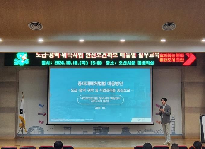 (중부시사신문) 오산시는 중대재해예방을 위해 10일 오산시청 대회의실에서 도급·용역·위탁사업 담당자들을 대상으로 실무교육을 추진했다.