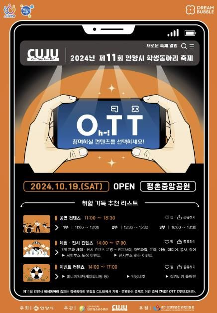 온라인 스트리밍 플랫폼 OTT(Oh~! 쿠주)를 콘셉트 삼아 진행되는 올해 축제에서는 안양시 초·중·고등학교 264개의 학생 동아리가 참여해 182개 체험 부스, 24개 전시 부스와 더불어 58개의 무대 공연을 선보인다.