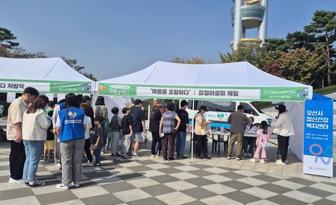 특히 4부 정신건강의 날 캠페인은 오산시민들의 우울감과 스트레스를 해소할 수 있도록 정신건강 선별검사, 감정 아로마 체험, 이루다 처방약, 걱정인형키트 만들기, 헤나스텐실 등의 다양한 체험부스로 진행됐다.