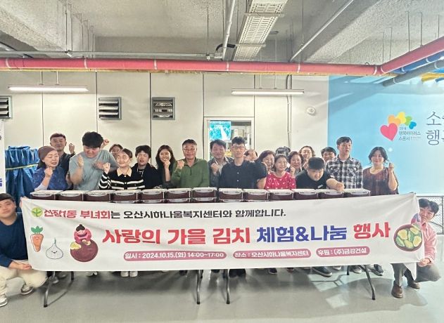 (중부시사신문) 오산시 신장1동은 15일 신장1동 새마을부녀회와 오산시하나울복지센터 발달장애인 30여 명이 자립능력을 키우기 위해 사랑의 가을김치 체험&나눔 행사를 진행했다고 전했다.
