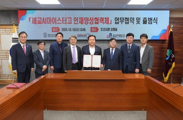 (중부시사신문) 오산시는 16일 오산시청 상황실에서 세교AI마이스터고 인재양성협력체 구성을 위해 오산대학교와 한신대학교와 업무협약을 체결했다.