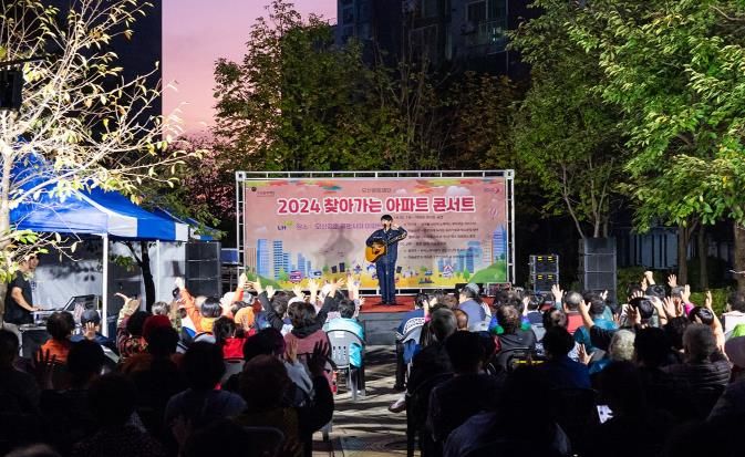 (중부시사신문) 지난 10.16. 18시, (재)오산문화재단은 오산청호 휴먼시아 아파트와 함께 '2024 찾아가는 아파트 콘서트'그 마지막 행사를 성황리에 마무리했다. 1부 행사엔 매혹적 목소리의 싱어송라이터 이규형과 우리가락과 색소폰이 녹아든 트로트를 앞세운 하늘소리, 지역 최강의 K-POP 댄스팀 플래닛8이 함께 했고, 2부에선 전국노래자랑이 낳은 오산의 보물 용진주, 그리고 오산남부종합사회복지관에서 준비한 시니어 마술단 아이노매직과 물향기 색소폰 동호회가 무대에 올랐으며 모든 공연팀들이 특히 관객들과 호흡하며 함께 어우러지는 모습이 인상적이었다.