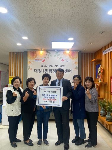 고영재 대원1동장은 “어려운 이웃을 위해 매년 기부를 실천해 주신 임선화 대원1동 통장협의회장님과 통장님들께 감사드리며 마련해주신 뜻깊은 성금은 관내 어려운 분들에게 지원하겠다”고 전했다.