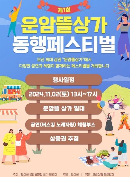 이번 축제는 골목상권 경쟁력 강화를 통한 지역경제 활성화를 목적으로 한 ‘오산시 골목상권 활성화 지원’ 사업에 선정된 운암뜰 연합상가 번영회가 사업비를 확보해 직접 추진한다.
