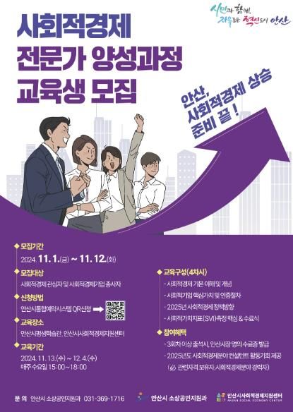(중부시사신문) 안산시는 오는 12일까지 사회적경제 전문 역량 강화를 위한 ‘사회적경제 전문가 양성과정’ 교육생을 모집한다고 6일 밝혔다.