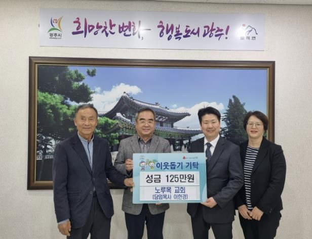 (중부시사신문) 광주시 도척면에 소재한 노루목교회는 26일 도척면 행정복지센터를 방문, 도움이 필요한 이웃을 위해 써 달라며 이웃돕기 성금 125만 원을 기탁했다.