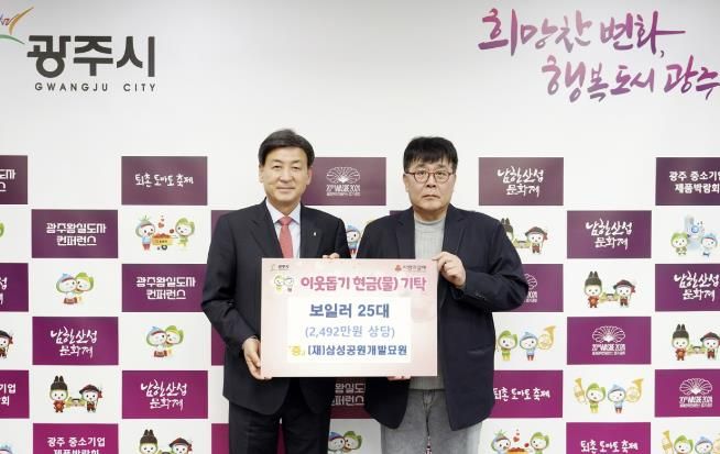 28일 시에 따르면 지난 25일 (재)삼성공원개발묘원 강석민 대표는 광주시청을 방문, 보일러 25대(2천492만원 상당)를 전달했다.