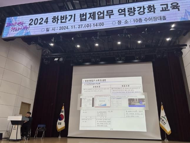 (중부시사신문) 광주시는 지난 27일 자치법규 입안 담당자와 신규 공직자 등 170여 명의 공직자를 대상으로 ‘2024년 하반기 법제업무 역량 강화 교육’을 했다.