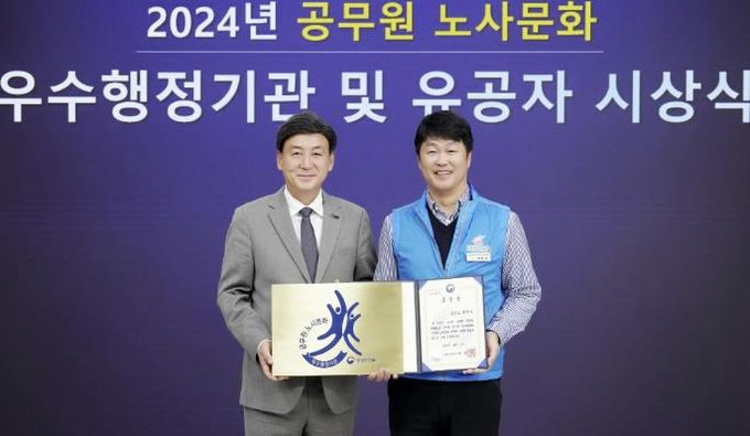 ‘공무원 노사문화 우수행정기관 인증제’는 바람직한 노‧사 관행을 모범적으로 실천하고 합리적 노사문화를 선도하고 있는 우수기관을 발굴해 인증·포상하는 제도로 노사관계 전문가(교수, 연구원, 변호사 등)로 구성된 심사위원회의 서면 심사, 현지 실사, 대면 심사로 총 3차에 걸친 평가를 통해 우수행정 기관을 선정한다.