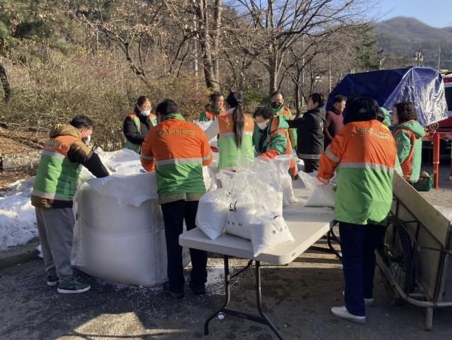 한편, 이날 제작된 염화칼슘 주머니는 강설 및 결빙 취약지역 제설함 내 비치, 긴급 제설 구역 살포 등 설해 대비에 사용될 예정이다.