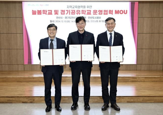 이날 협약식에는 이민근 안산시장과 김태훈 안산교육지원청 교육장, 허숭 안산도시공사 사장을 비롯한 관계자 30여 명이 참석한 가운데 늘봄학교와 경기공유학교 프로그램의 운영 활성화를 위한 협력을 약속했다.