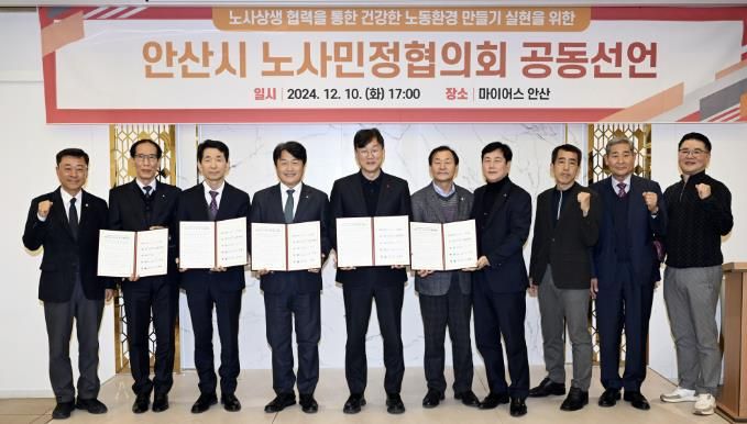 (중부시사신문) 안산시 노사민정협의회는 지난 10일 마이어스 안산에서 2024년 노사민정협의회를 개최하고 ‘노사상생 협력 공동선언문’을 발표하는 자리를 가졌다고 11일 밝혔다.