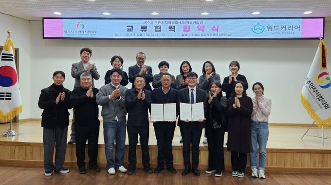 (중부시사신문) 광주시 주민자치협의회는 지난 11일 초월읍 행정복지센터에서 사단법인 위드커리어와 공동 발전을 위한 교류 협력 협약을 체결했다.