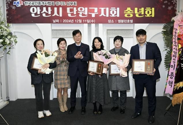 한국공인중개사협회 안산시 단원구지회 송년회를 겸해 열린 이번 행사에서는 건전한 부동산 중개 질서 확립에 힘쓴 대상자들에게 유공 표창이 수여됐다.