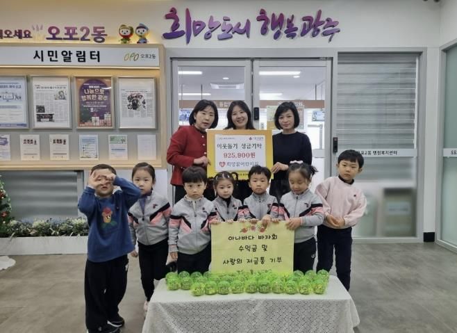 (중부시사신문) 우방희망꿈 어린이집 원아들은 지난 12일 광주시 오포2동 행정복지센터를 방문해 성금 92만5천900원을 기탁했다.