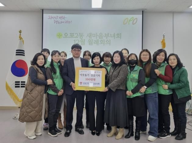 (중부시사신문) 광주시 오포2동 새마을부녀회는 13일 오포2동 행정복지센터를 방문해 이웃돕기 성금 100만 원을 기탁했다.