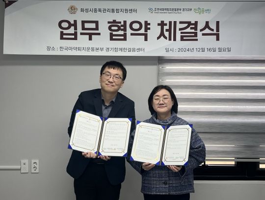 (중부시사신문) 화성시중독관리통합지원센터가 16일, 마약퇴치운동본부 경기지부 산하 경기함께한걸음센터와 업무협약(MOU)을 체결했다. 이번 협약은 마약 문제 해결 및 중독자 지원을 위한 효과적이고 체계적인 협력 기반 조성을 목표로 진행됐다.