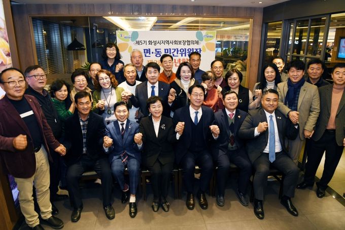 이번 송년회는 화성시의회 배정수 의장, 김종복, 김상균 의원을 비롯해 화성시 29개 읍면동 지역사회보장협의체 민간위원장과 협의체 사무국 직원들이 참여한 가운데, 업무 연찬과 감사장 전달 등으로 진행됐다.