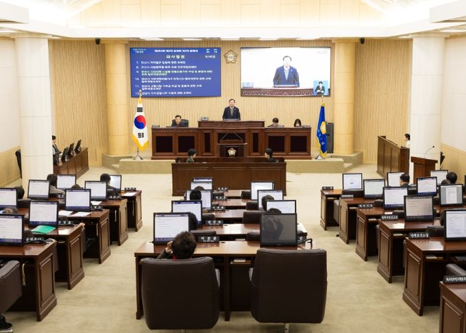이날 본회의를 주재한 박태순 의장은 폐회사에서 “지난 11월 27일과 28일의 기록적인 폭설로 농가 비닐하우스, 화훼·축사 시설을 비롯해 많은 피해가 발생했다”며 “피해 농가와 자영업자, 소상공인들의 어려움이 가중되지 않도록 시 집행부에서는 행·재정적 지원과 안전관리 강화 대책 마련에 만전을 기해달라”고 밝혔다.
