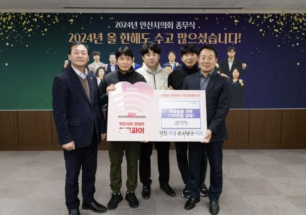 (중부시사신문) 안산시의회가 주최한 2024 의장기 축구대회의 우승팀 ‘제로FC 축구단’이 연말연시를 맞아 뜻깊은 일에 써 달라며 시의회에 100만원 상당의 후원물품을 기탁해 화제다.