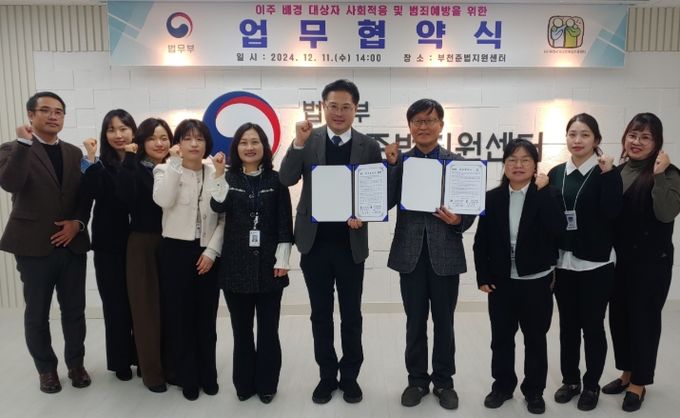 (중부시사신문) 부천시 외국인주민지원센터는 지난 11일 부천준법지원센터와 지역사회 이주배경 대상자의 안정적인 사회 적응과 준법의식 함양을 위해 상호협력체계 구축을 위한 업무협약을 체결했다.