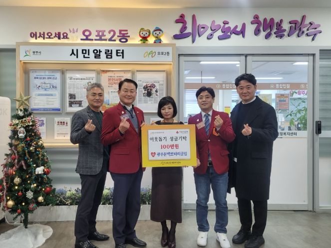 이에 대해 4개 동 동장들은 “따뜻한 이웃사랑 실천에 앞장서 주신 광주문백로타리클럽 회원들에게 감사드린다”며 “전달해 주신 성금은 주변의 소외된 이웃들을 위해 소중히 사용하겠다”고 전했다.
