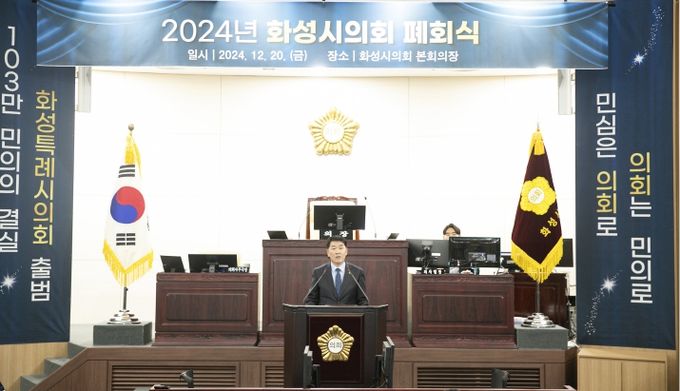배정수 의장은 폐회사를 통해 “2024년은 화성시의회가 특례시의회로의 도약을 구체화하고, 한 걸음 더 나아간 한 해였다.”라며, “지금의 성과에 안주하지 않고 더 큰 목표를 향해 앞장서 나가겠다.”라고 포부를 밝혔다.