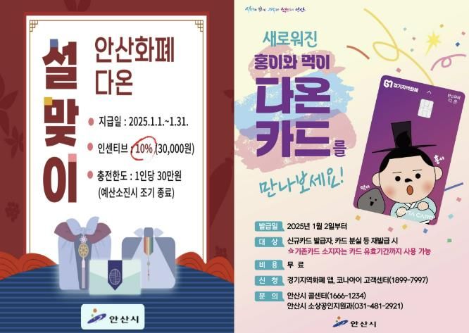 (중부시사신문) 안산시는 민족 최대의 명절 설날을 맞아 2025년 1월 한 달 동안 안산화폐 다온 ‘특별 인센티브’를 지급한다고 26일 밝혔다.