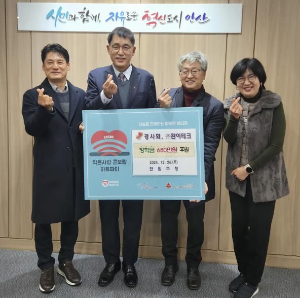(중부시사신문) 안산시단원구는 지난 26일 경사회와 ㈜환이테크로부터 저소득가정 아동을 위한 장학금 680만 원을 기탁받았다고 27일 밝혔다.